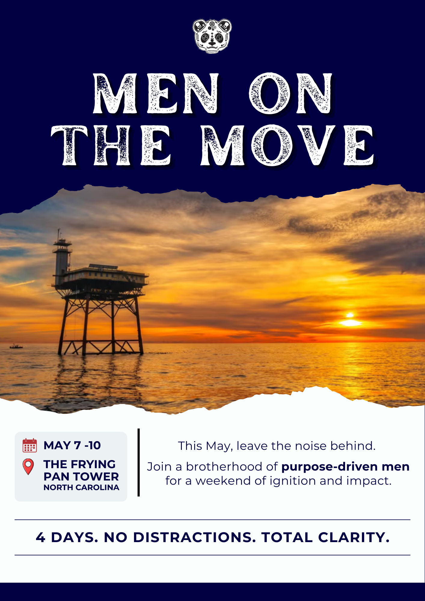 Ready to abandon a life by default? This May, 10 men will travel 32 miles into the Atlantic Ocean to a former Coast Guard platform turned eco-lodge for four days of challenge, clarity, and connection.